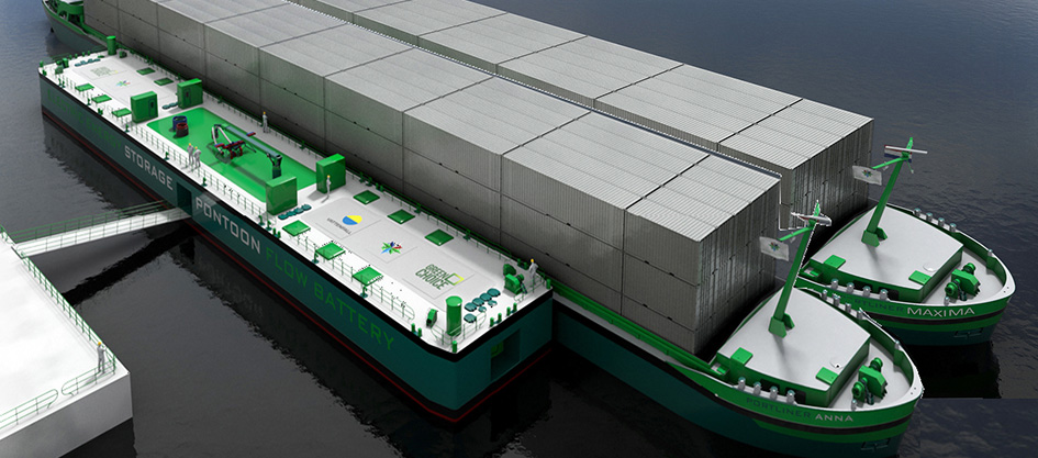 Patent for E-Storage Pontoon, Charging Electrolyte on a Floating Barge up to 1 GWh
